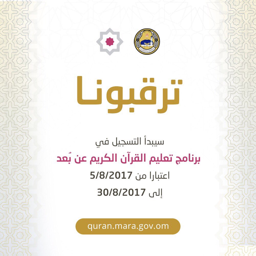تعليم قراءة القرآن الكريم وأحكام التجويد والرموز. بدء التسجيل في برنامج تعليم القرآن الكريم عن بعد 16 أبريل 2020 جريدة ع مان يبدأ غدا فتح باب التسجيل في برنامج تعليم القرآن الكريم الالكتروني بوزارة الأوقاف والشؤون الدينية ويستمر حتى 22 ابريل. دشنت وزارة الأوقاف والشؤون الدينية بسلطنة عمان مشروع تعليم القرآن الكريم عن ب عد عبر الوسائل والتقنيات الإلكترونية تعبيرا عن الاهتمام بنشر الثقافة الإسلامية وتيسير سبل ذكر.