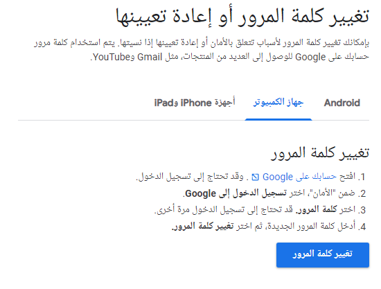 كيفية تغيير كلمة السر في حساب الجيميل دزاير موبايل