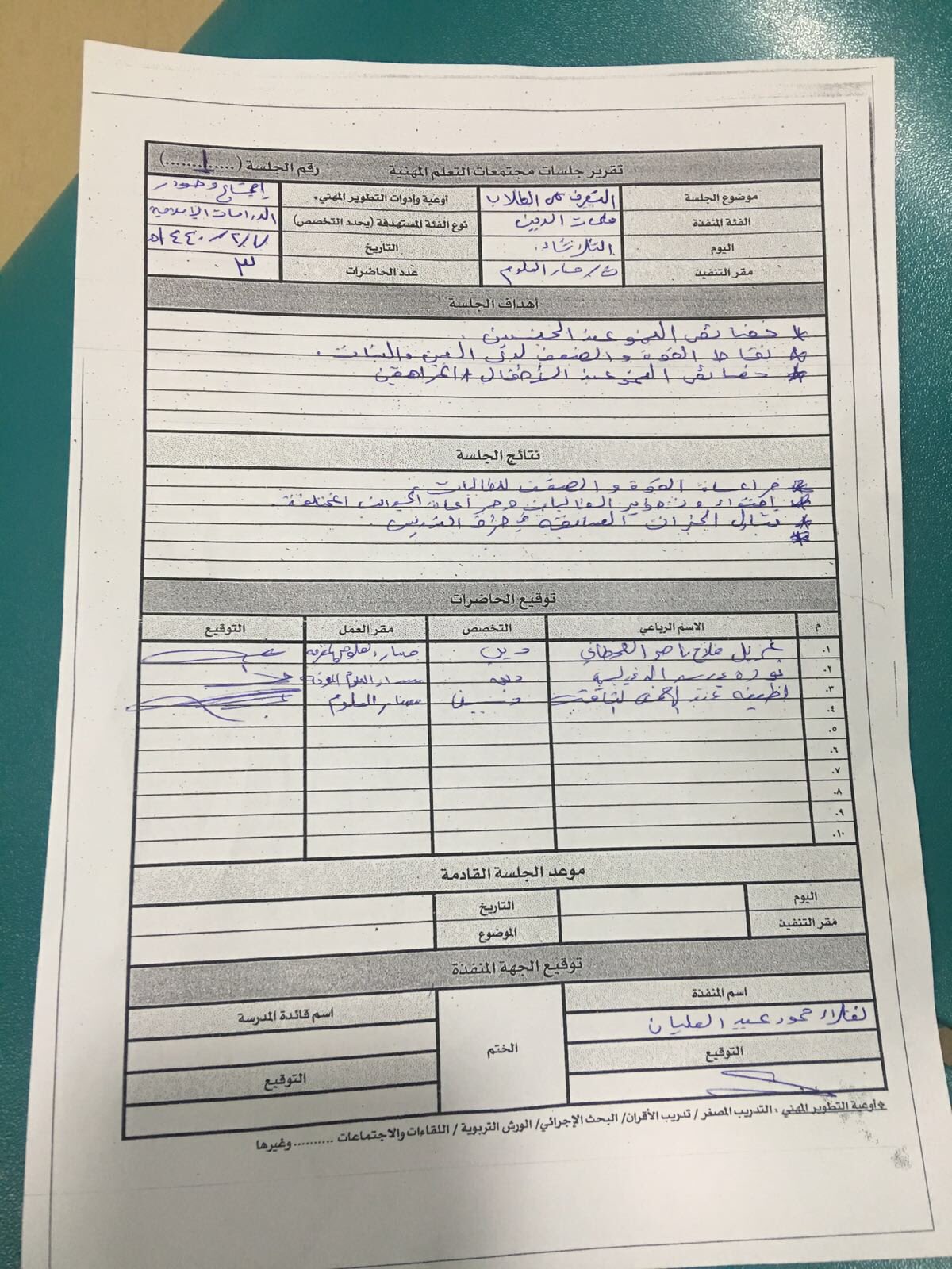 نموذج تقرير جلسات مجتمعات التعلم المهنية Ra2ed
