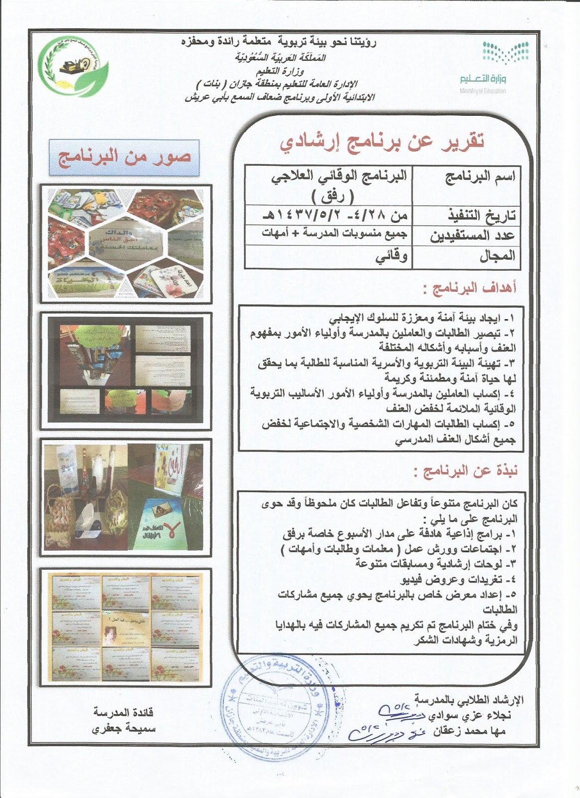 الإرشاد الطلابي ب1 وبرنامج ضعاف السمع بأبي عريش تفعيل البرنامج الوقائي العلاجي رفق للفصل الدراسي الثاني