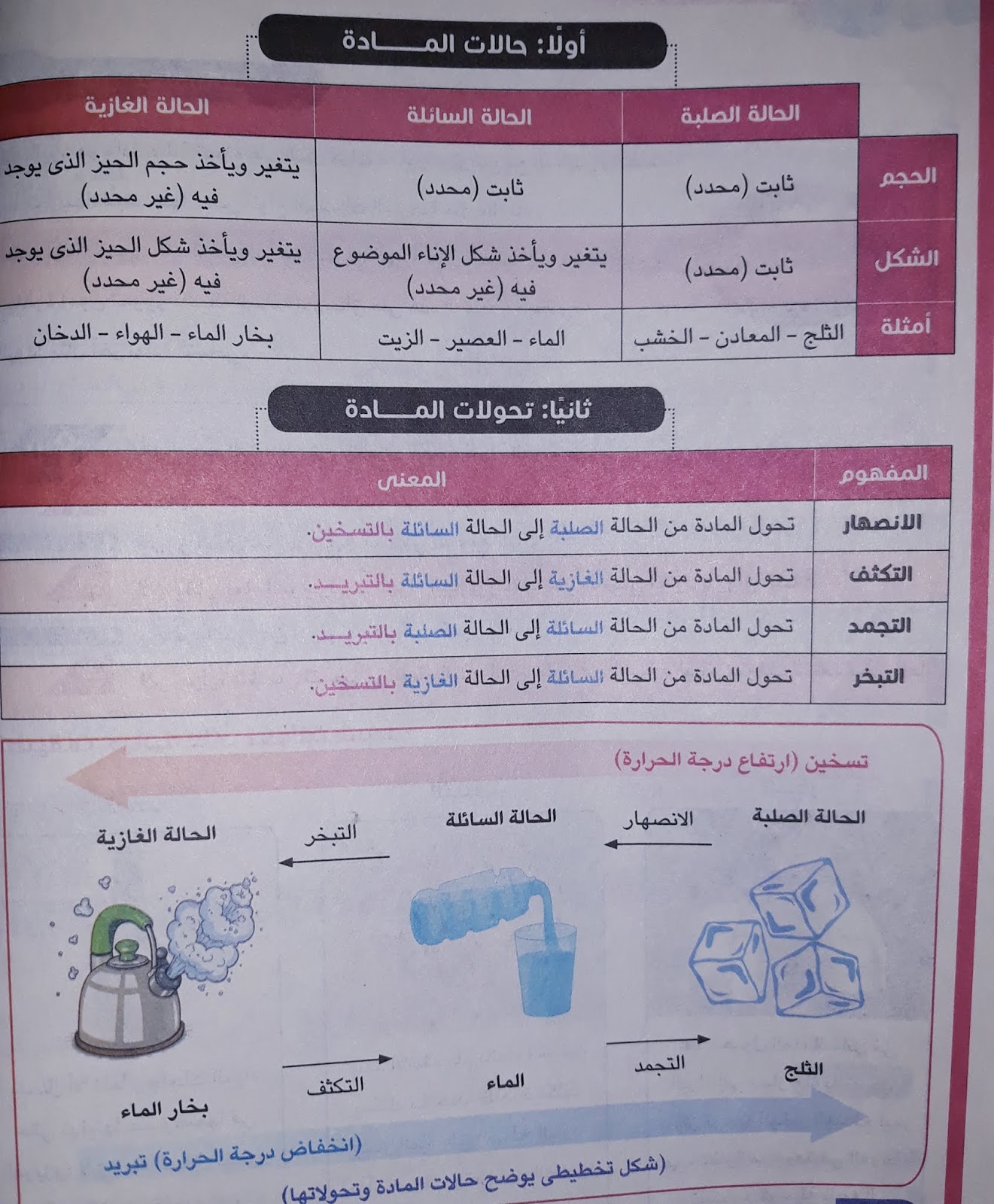 حالات المادة وتحولاتها الصف الرابع الابتدائي مادة العلوم اجيال الاندلس