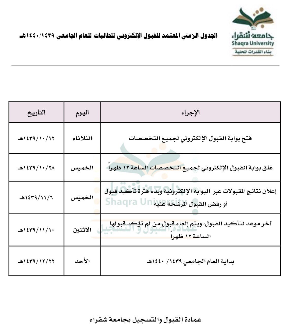 عمادة القبول والتسجيل Auf Twitter مواعيد قبول الطالبات جامعة شقراء