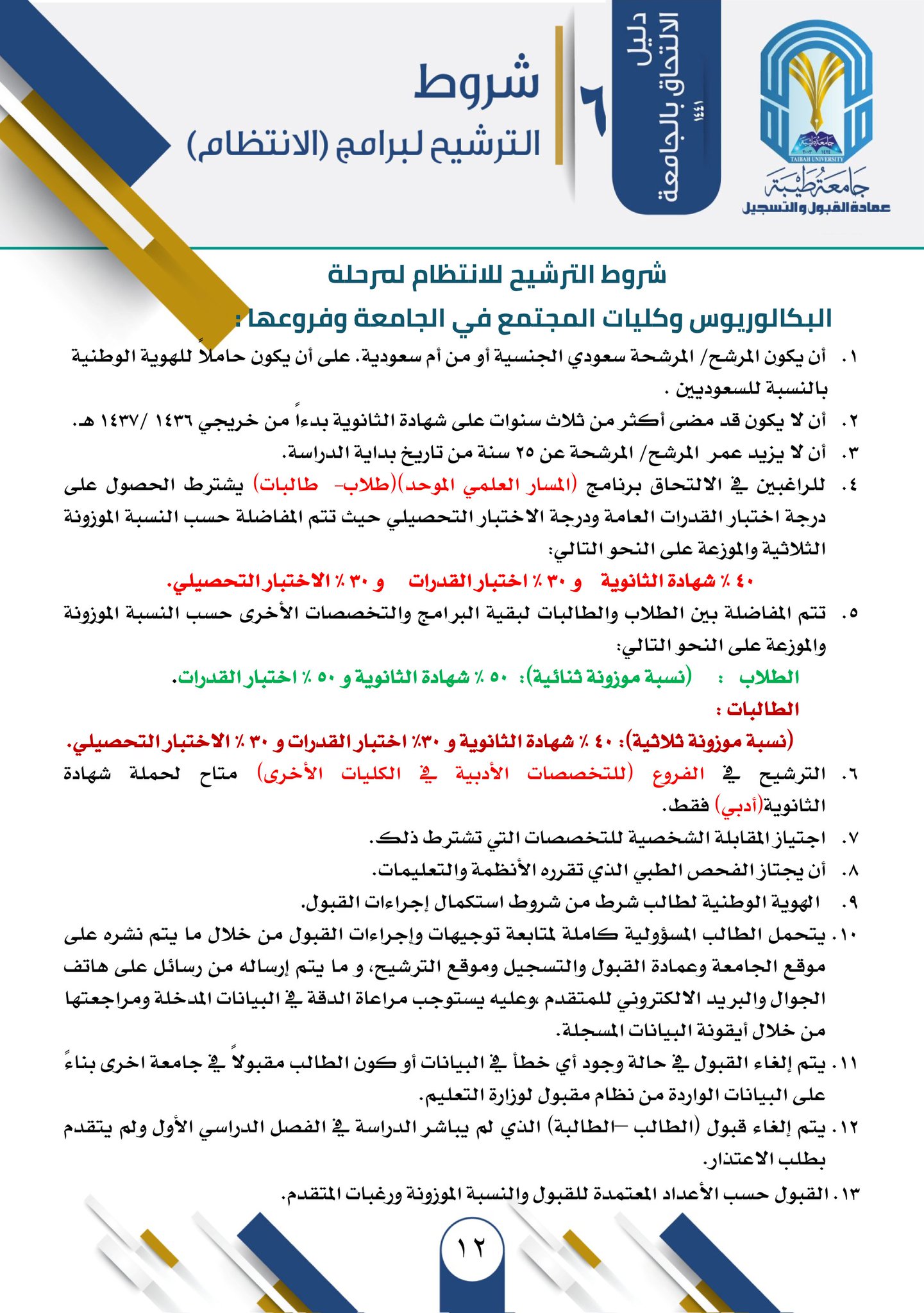 جامعة طيبة العمادات عمادة القبول والتسجيل خدمات القبول البرامج والتخصصات