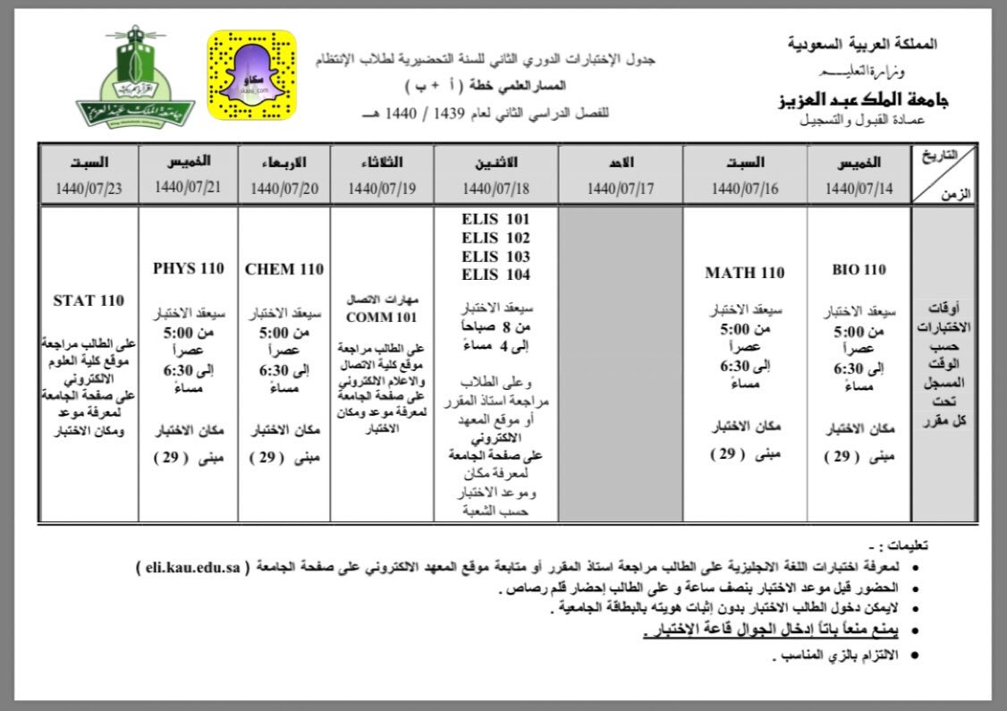 سكاو Auf Twitter جداول الاختبارات النهائية لطلاب السنة التحضيرية انتظام في جامعة الملك عبدالعزيز تحضيري١٨ تحضيري ١٨ سكاو