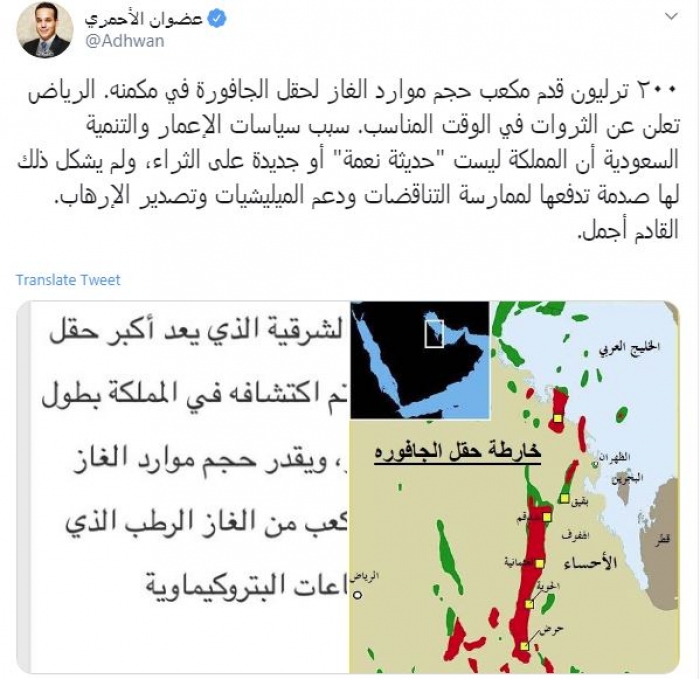 الأحمري ي وجه رسالة لـ قطر بشأن حقل الجافورة