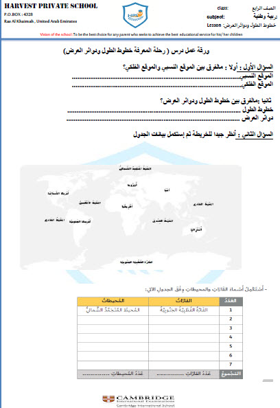 خطوط الطول ودوائر العرض بالانجليزي