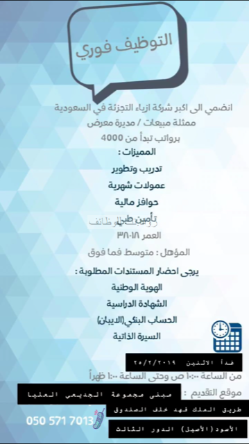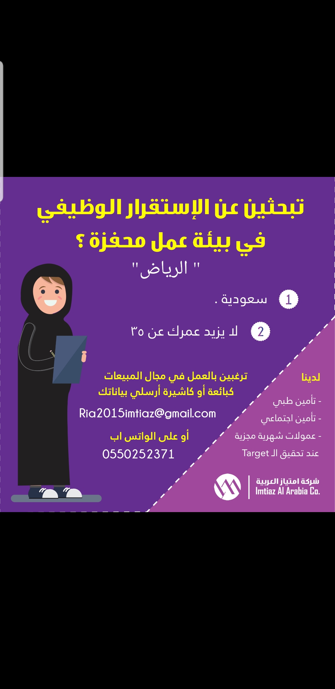 وظائف نسائية في الرياض ممثلة مبيعات مديرة معرض برواتب 4000 ريال التقديم غدا