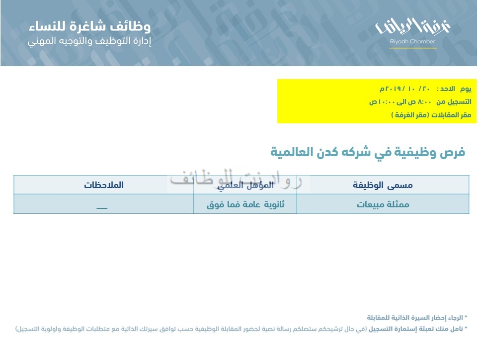 شركه كدن العالمية وظائف نسائية ممثلة مبيعات في الرياض