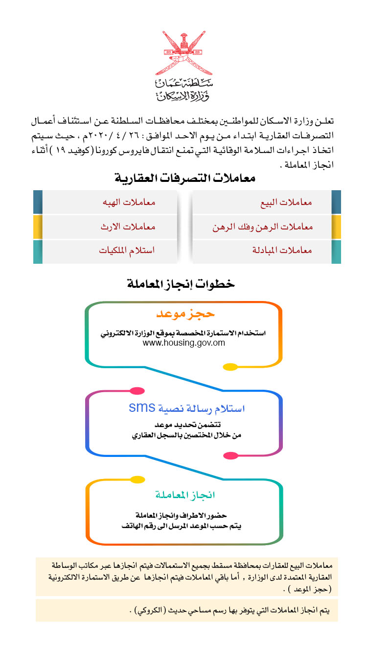 طلب حجز موعد بوزارة الإسكان الع مانية وأرقام الهواتف خبرنا